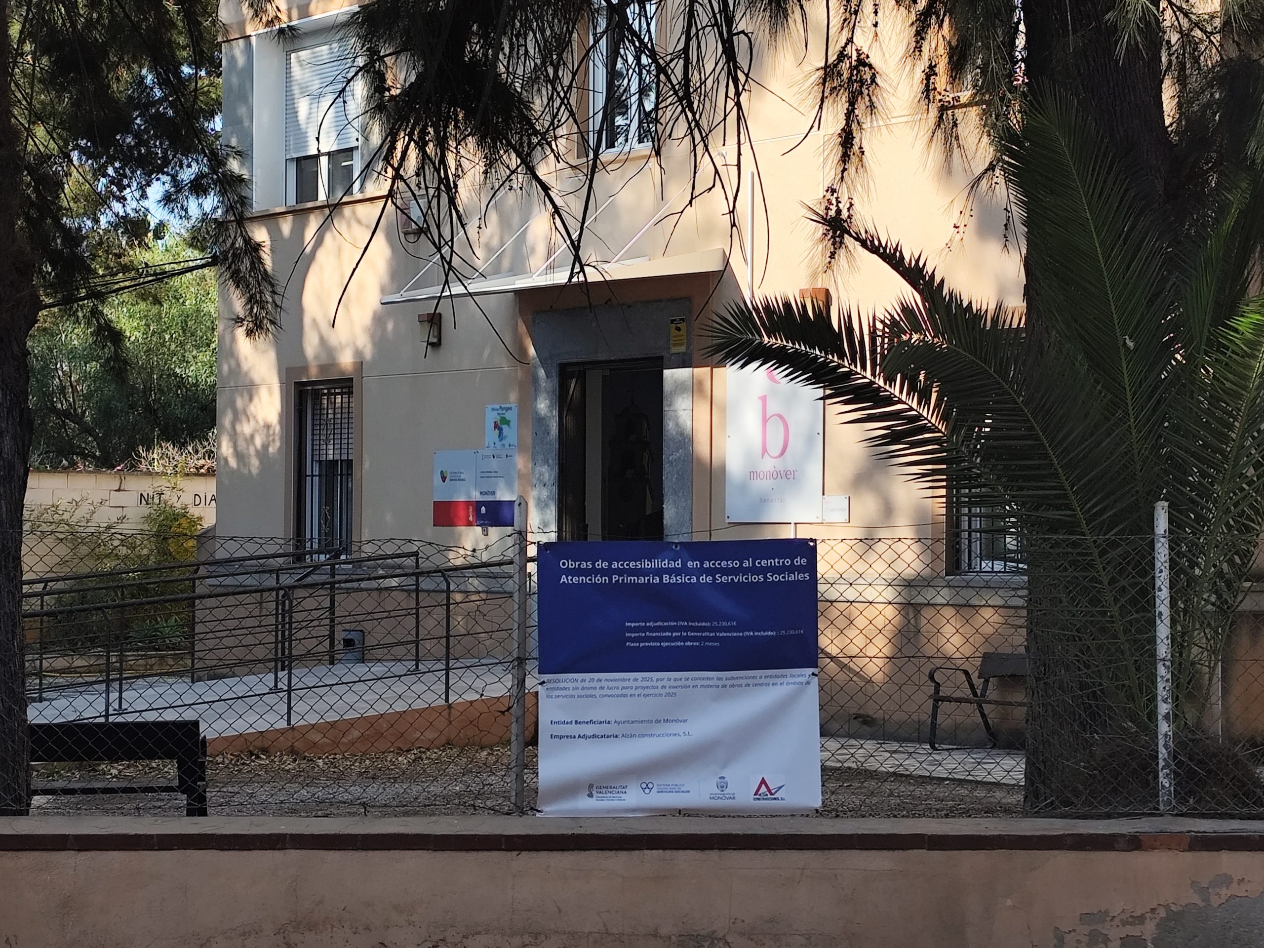 Monòver ha rebut una subvenció de 25.230,61 euros, concedida mitjançant la resolució de 20 de novembre de 2025, destinada a finançar obres d’accessibilitat en l’accés al Centre d’Atenció Primària Bàsica de Serveis Socials.