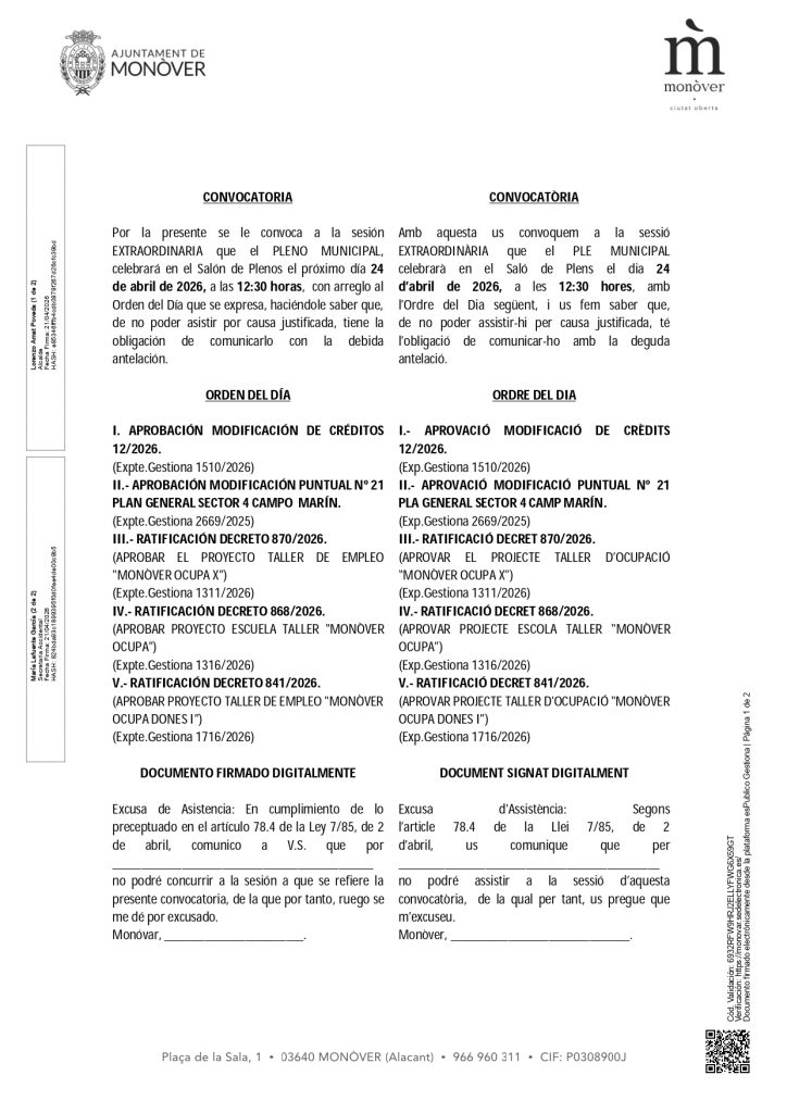 Ayuntamiento de Monóvar – Ajuntament de Monòver Ayuntamiento de Monóvar – Ajuntament de Monòver