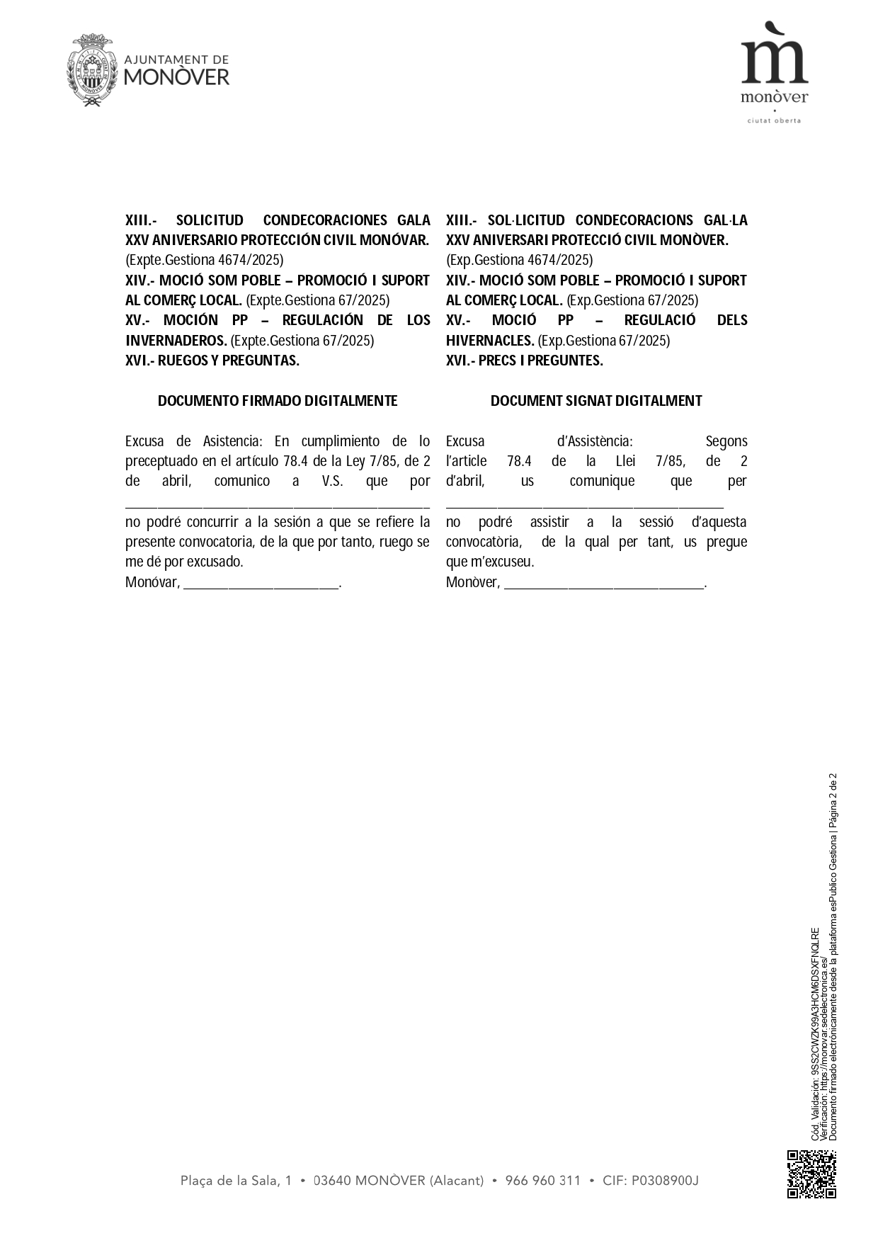 Ayuntamiento de Monóvar – Ajuntament de Monòver Ayuntamiento de Monóvar – Ajuntament de Monòver